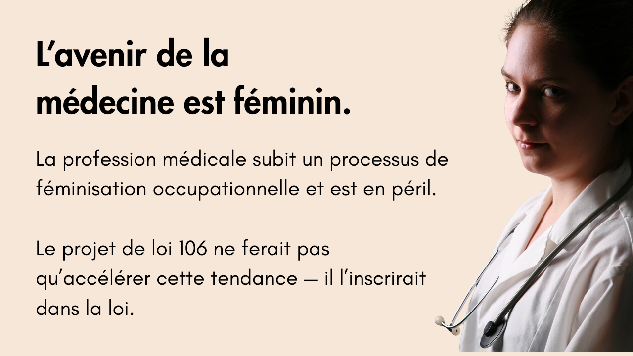À première vue, le projet de loi 106 pourrait nuire à tous les médecins. Mais voyons pourquoi les femmes médecins en souffriraient davantage.